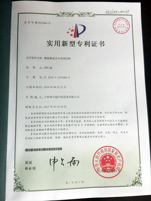 恭賀我司獲得國家專利局審批的實用新型專利產(chǎn)品證書